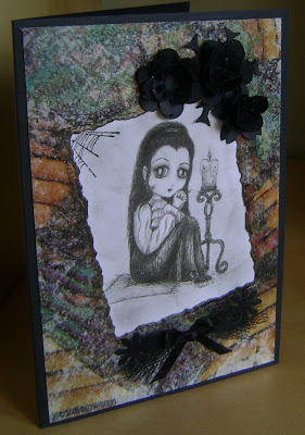printed the image onto white,stamped a bit of a cob web stamp to one corner,
